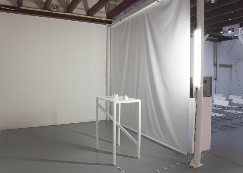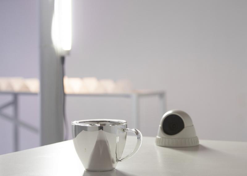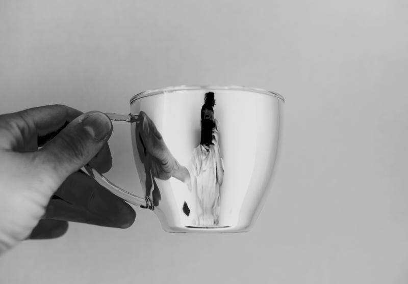 A glass mirror cup is placed on an empty surface; she carefully lifts it until she sees her faces’ reflection on the bottom of the cup. A moment of consideration, a moment of break. Suddenly she lifts the mirror cup to her lips and takes a sip of water from the glass. Drinking the image of herself, the object and the subject of this simple act becomes one, an infinite loop, like the one of the moebius bands’ surface begins.