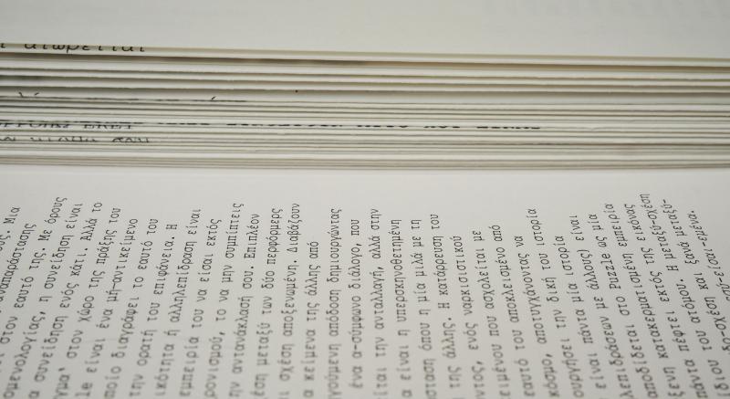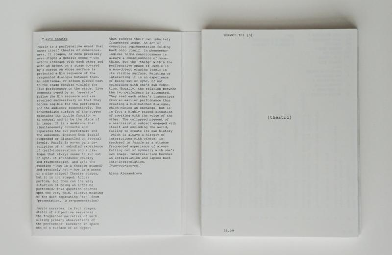 The presented book [theatro] is a rhythmical reading experience, a 5,5 meters long transcript of a seminar performance, reflecting it’s original pulse and duration. With introduction by Alena Alexandrova.