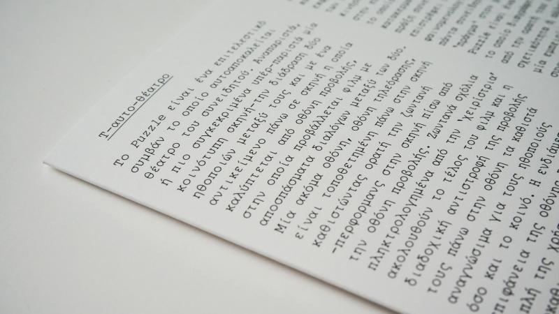 The staged event I AM A ’Φ’ on the 27th of June is a performance that attempts to trigger imagination of a particular existential state via constant tension and recurrence. The two characters of [theatro], A and B, are performed by a single person (language: English and Greek). Performed by Tania Theodorou and Maria Lalou.