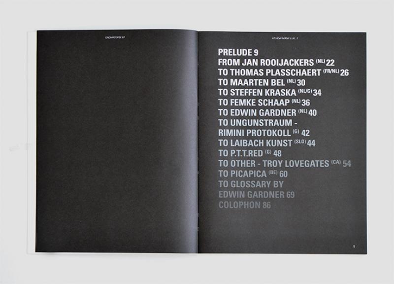 With: Maarten Bel (NL), Steffen Kraska (NL/G), Laibach Kunst (SLO), Other / Troy Lovegates (Can), PicaPica (B), Thomas Plaesschaart (FR), p.t.t.red (Hans Winkler & Stefan Micheel /G), Jan Rooijackers (NL), Ungunstraum / Rimini Protokoll (G), Femke Schaap (NL) and Edwin Gardner (NL)