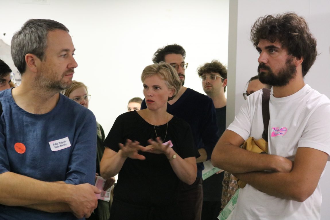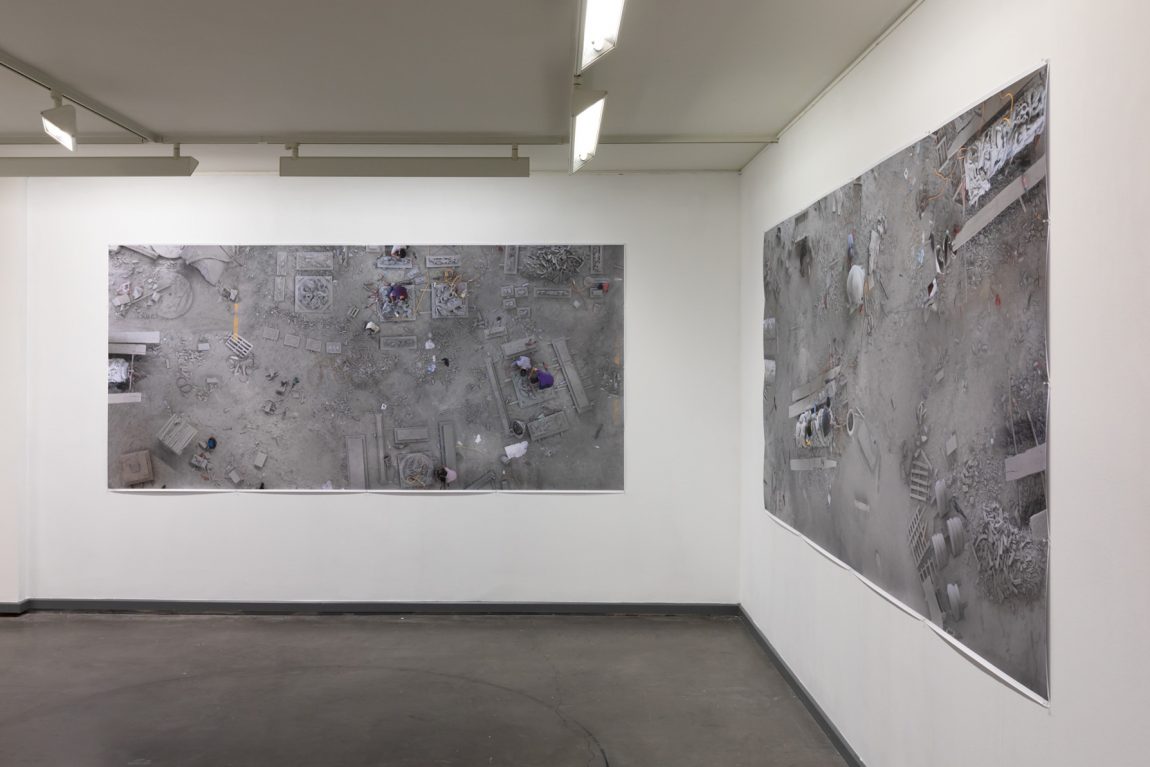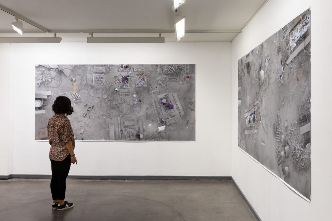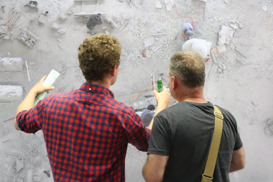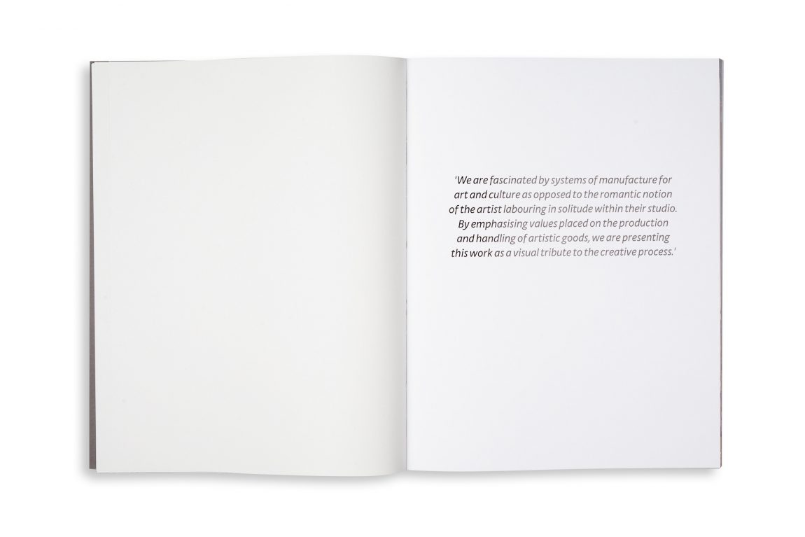 ‘We are fascinated by systems of manufacture for art and culture as opposed to the romantic notion of the artist labouring in solitude within their studio. By emphasising values placed on the production and handling of artistic goods, we are presenting this work as a visual tribute to the creative process.’