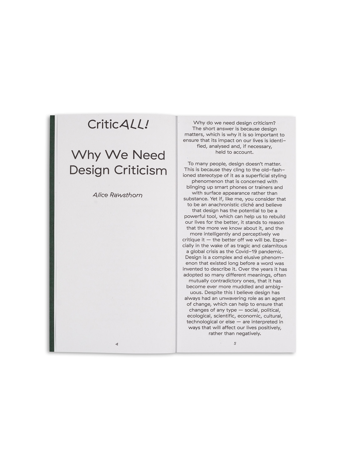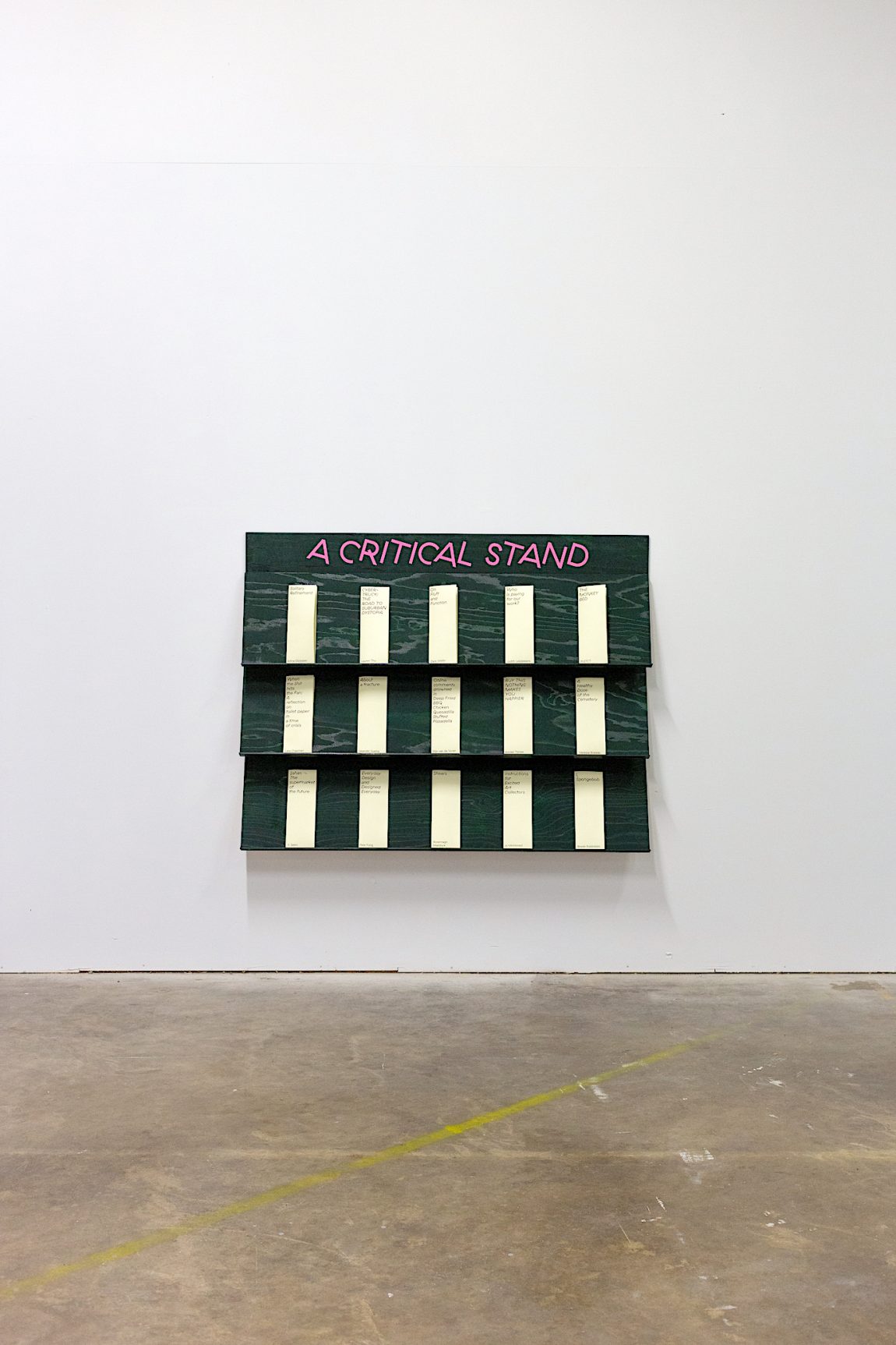 Billboard advertisements are designed to catch a person’s attention and create a memorable impression very quickly, meant to leave the reader thinking about the advertisement after they have driven, walked, or cycled past it. The CriticALL! installation makes use of these mass-communication aesthetics (billboard, newsstand) to catch everyone’s attention and wishes to redirect that attention towards the critical content of the 15 selected essays of the CriticALL! open call.