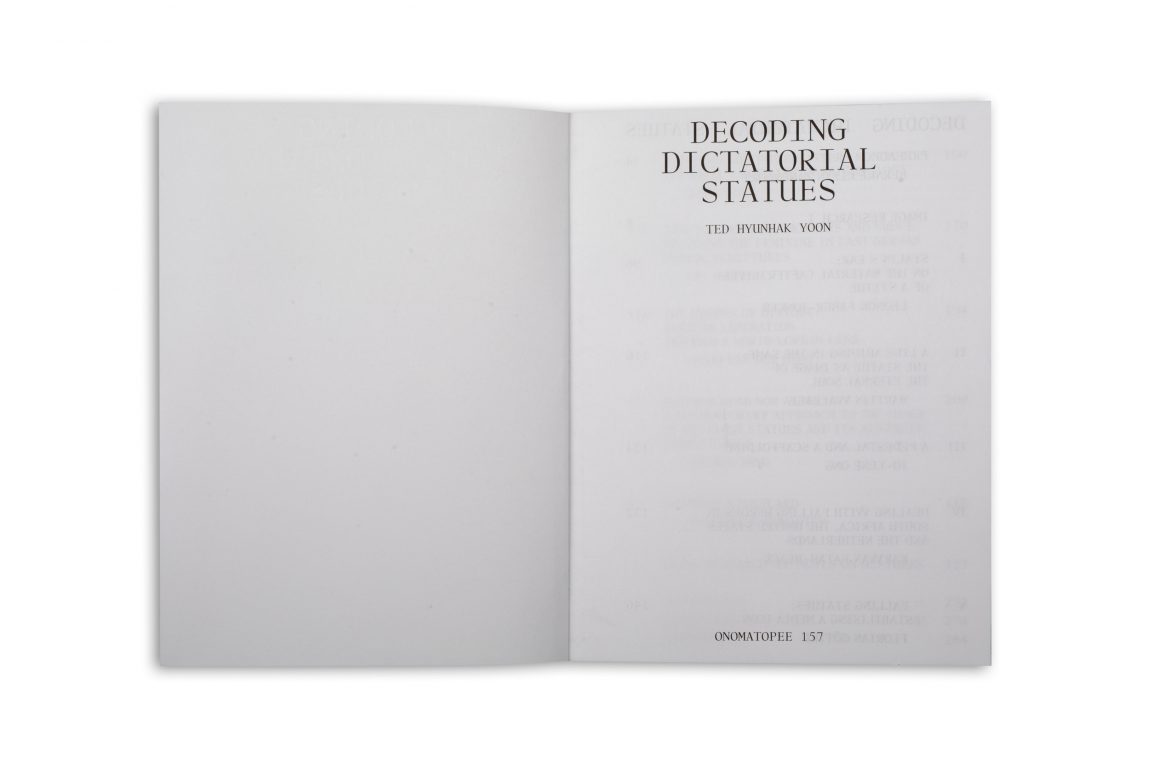 Being a graphic designer, always concerned with mediating contents and growing up next to neighbour North Korea, Ted Hyunhak Yoon started collecting and dissecting the images of statues. Taking the dictator’s statue as a starting point, the publication Decoding Dictatorial Statues aims to demonstrate how this particular object can be so powerful. Being centered on the term ‘visual design journalism’ Yoon’s visual analysis forms the backbone of the book. It attempts to find the (visual) rules and phenomena that exist within, and lay behind, these statues.