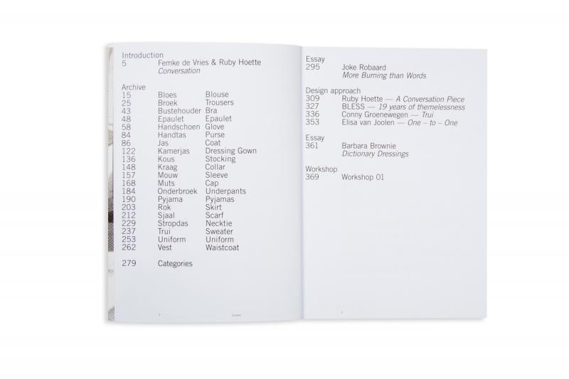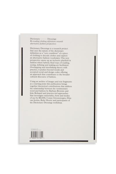 The publication brings together theoretical contributions that address the relationship between fashion and the vestimentary word by Barbara Brownie and Joke Robaard, and practice-led approaches by BLESS, Conny Groenewegen, Elisa van Joolen, Ruby Hoette and participants of the Dictionary Dressings workshop. This ongoing project is captured in a book designed by Hans Gremmen and Corine van der Wal.