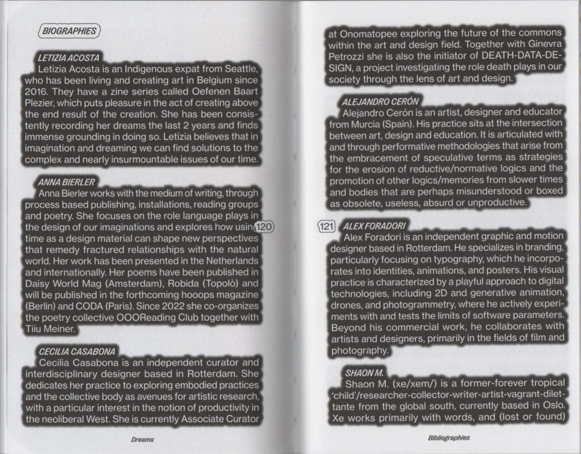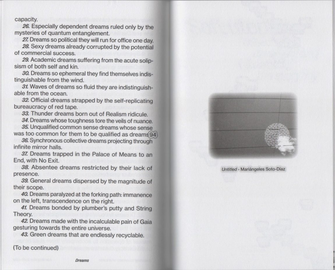 The act of dreaming, positioned delicately between the real and the unrealized or unfulfilled, is nourished by hope and desire, but also by fear and disillusionment. It is when living in times of economic and social insecurity that the collective body claims for more space and action, growing louder and stronger. Rather than viewing precarity as a barrier, we can embrace it as an intrinsic aspect of existence that fosters collaboration among both living and non-living creatures. In this new light, precarity assumes a life-producing capacity, generating alternative worlds and stories. When dreams and nightmares take stage as protagonists for a common purpose, they equip us with unexpected tools, offering resources beyond our individual imaginings.