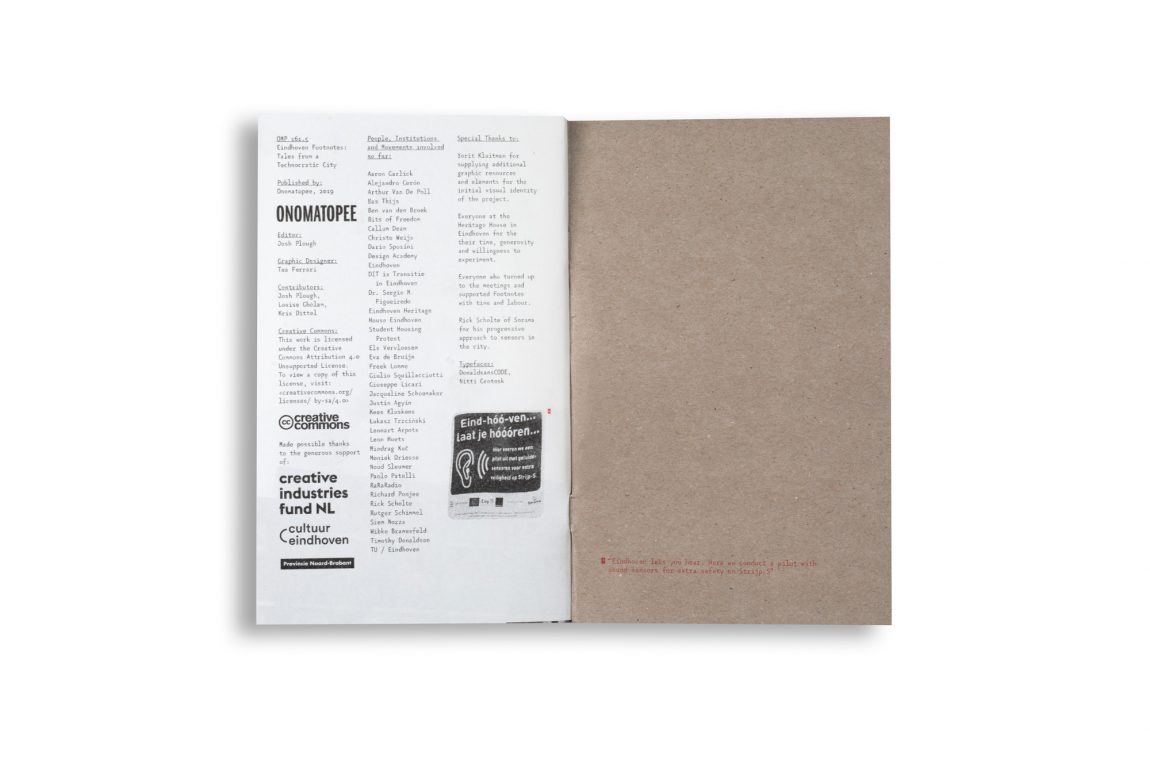 Eindhoven Footnotes is a grassroots project that investigates the lived experiences of citizens in a technocratic city. Through the lens of design, writing, researching, archeology and artistic practice, the city will be dissected by an editorial board overseeing a group of participants of various backgrounds. There is a permanent, open source and public reference library and research space based at Onomatopee, which also serves as a base for our actions. It's from here that we expand out into the city.