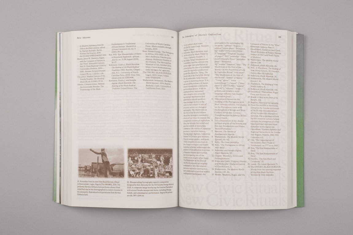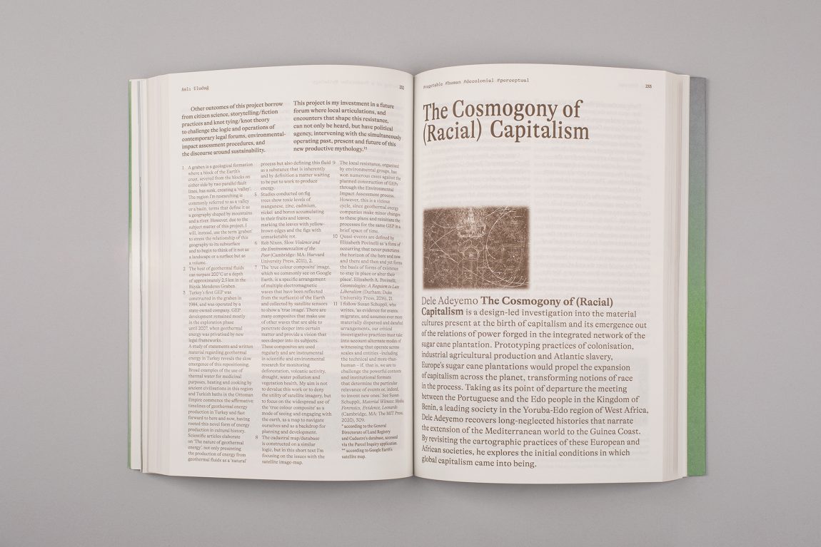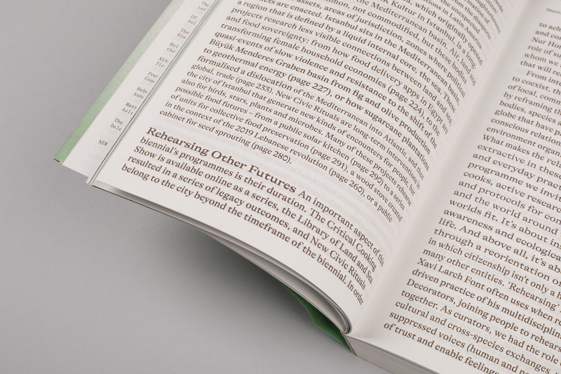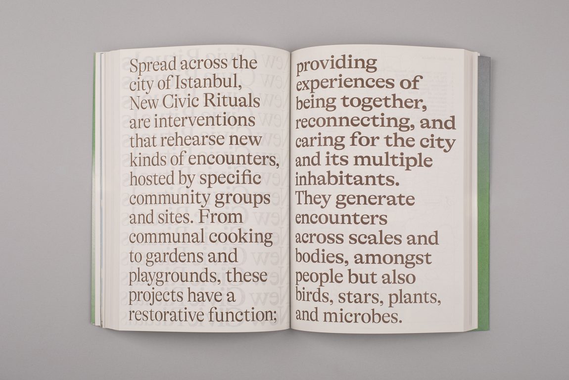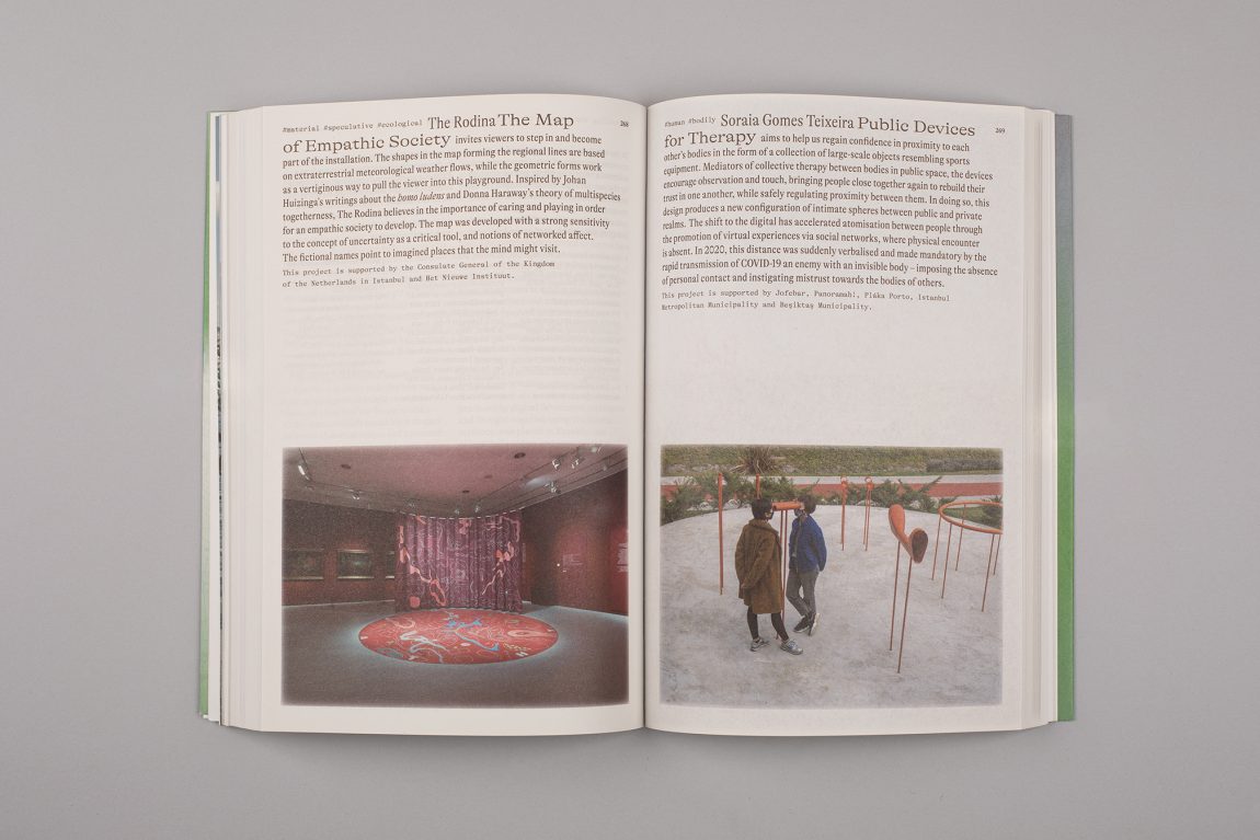 Edited by Mariana Pestana with Sumitra Upham and Billie Muraben, with written contributions by Ekin Ozbicer, Mariana Pestana, Susan Lanzoni, Naz Şahin, Billie Muraben, Sumitra Upham, FRAUD, Luigi Coppola and Vivien Sansour and Pelin Tan, Aslıhan Demirtaş, Black Athena Collective, theOtherDada, TiriLab, Counterspace, Anna Puigjaner (MAIO) with Alina Abouelenin, Aslı Uludağ, Dele Adeyemo, Young Curators Group, Eylül Şenses, Ulya Soley, Nur Horsanalı, Studio Ossidiana, Orkan Telhan + elii, Ibiye Camp, Ben Thorp Brown, Paula Gaetano Adi, Meriem Bennani, Calum Bowden, Jawa El Khash, Emmy Bacharach, Alice dos Reis, Macedo Cannat, Future Anecdotes.