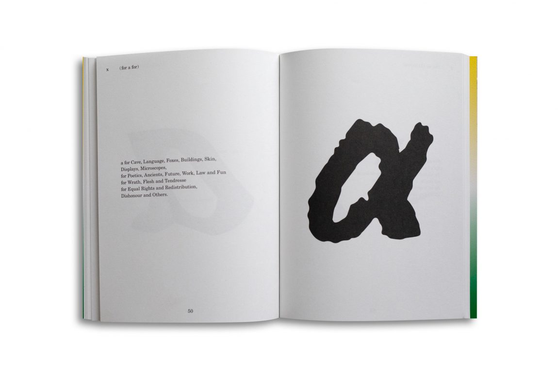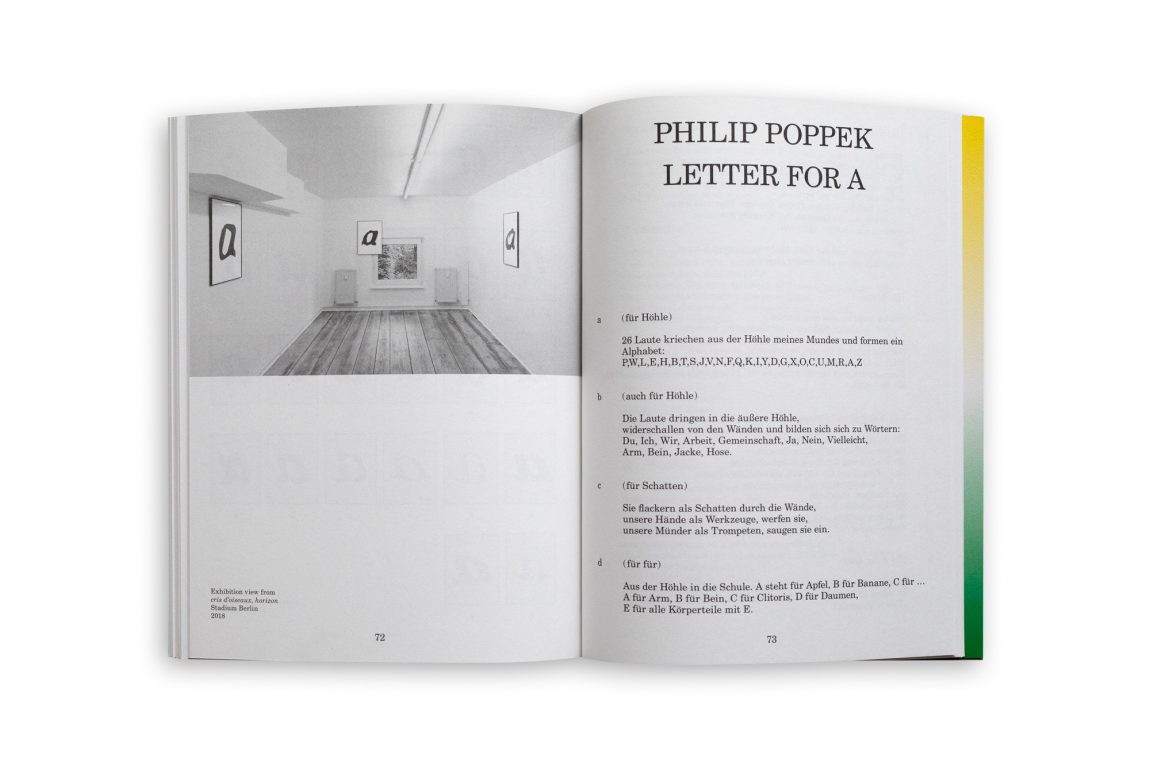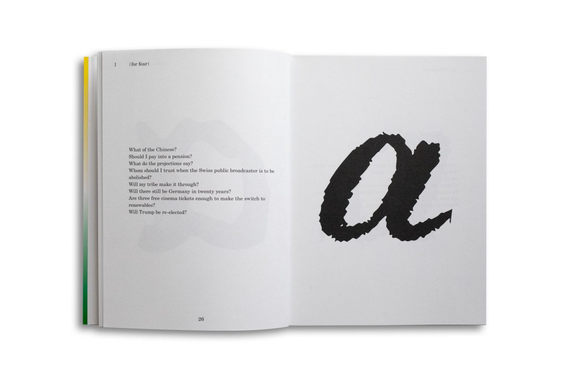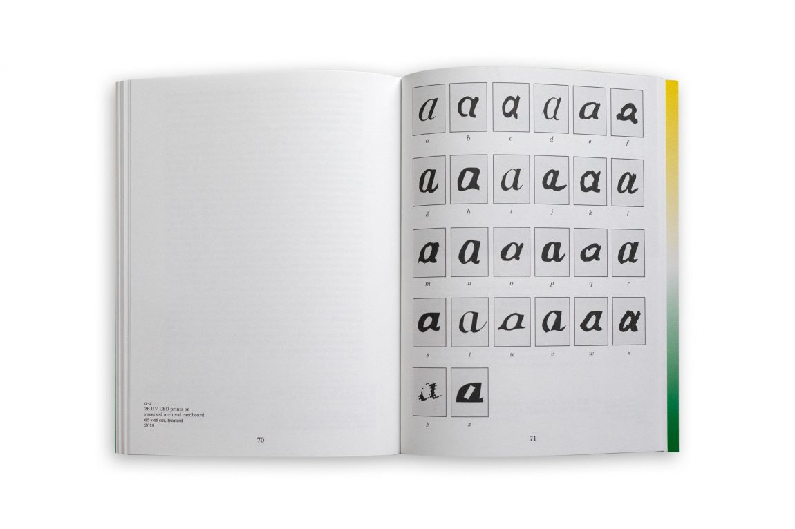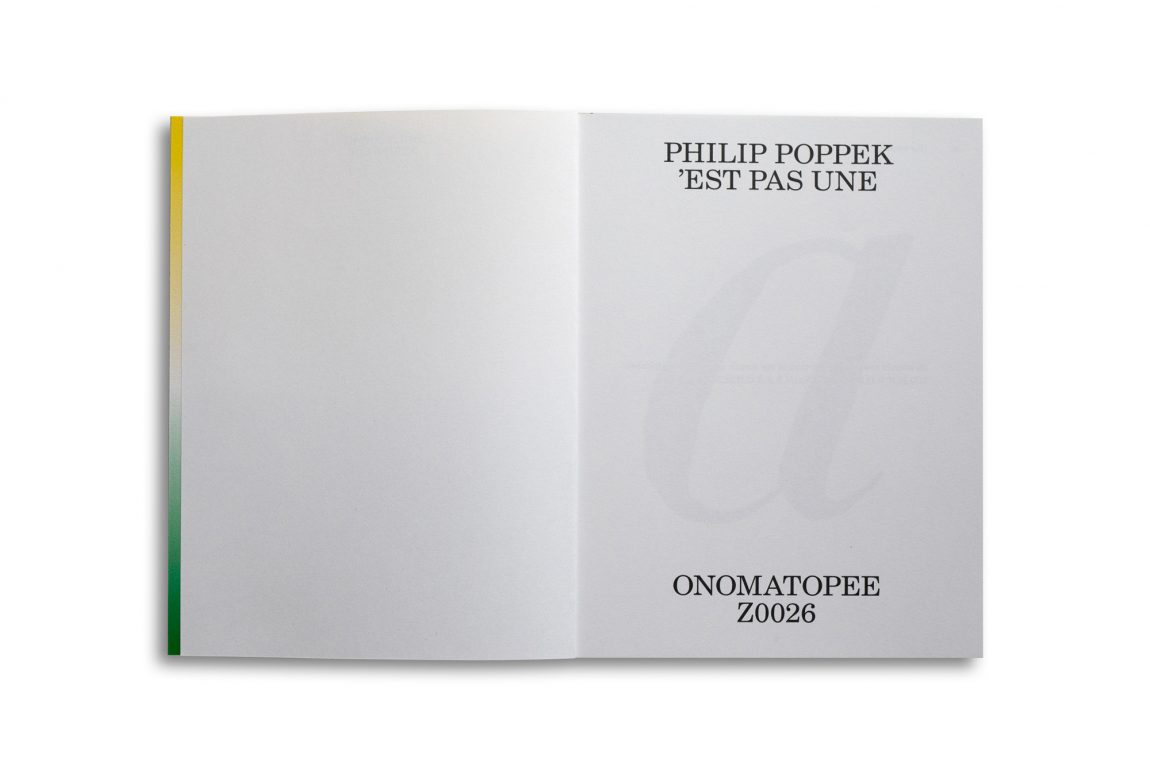 By way of archiving, digital translation and reproduction, Philip Poppek extracts from Magritte’s word paintings twenty-six letters; segmental symbols of a textual system form an alphabet of a, with a familiar apple punctuating a provisional end to the sequence. A poetic correspondence with the letter a speculates on the prehistory of this alphabet, as though searching for some indication as to how we may have come to where we are now, in this ‘post-factual moment’.
