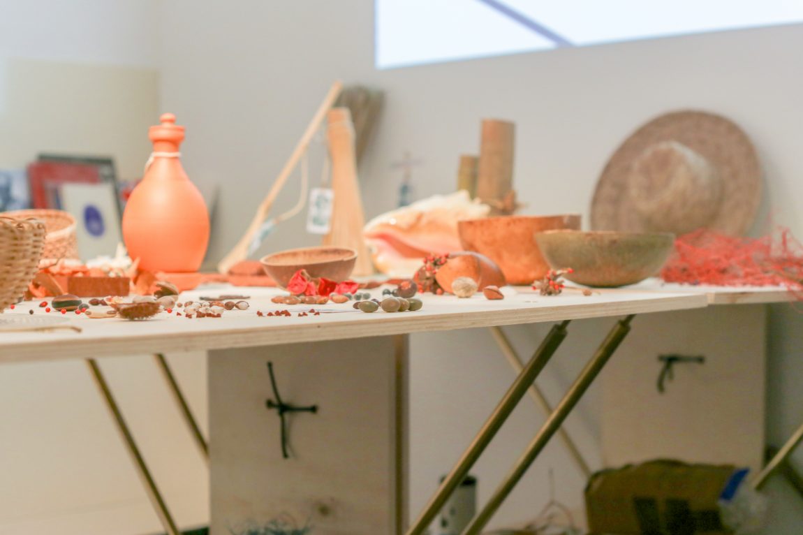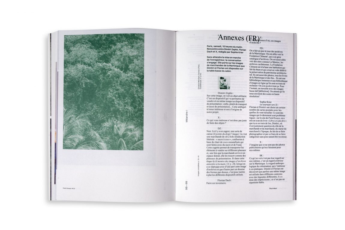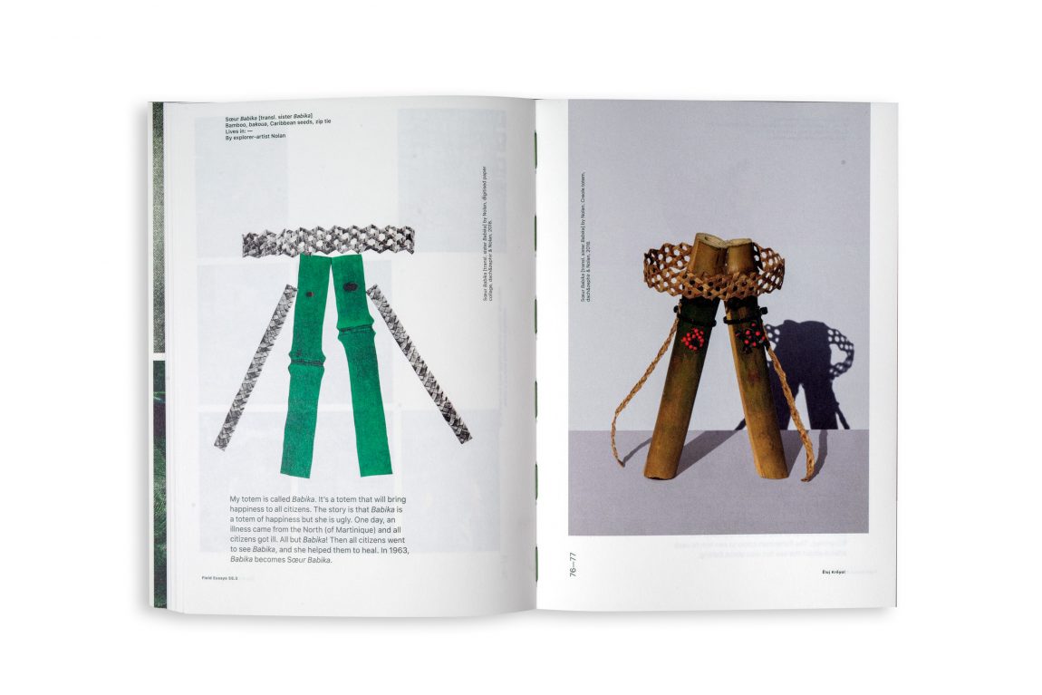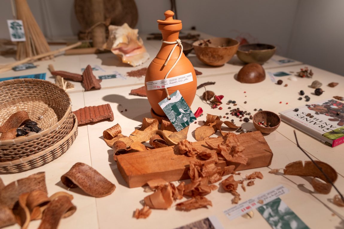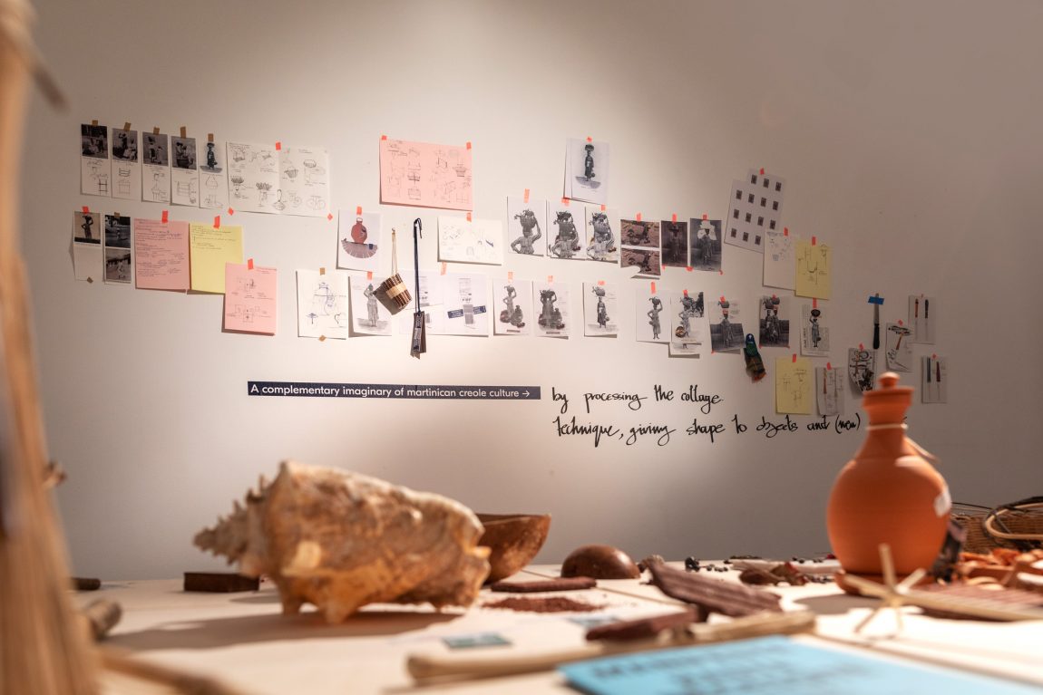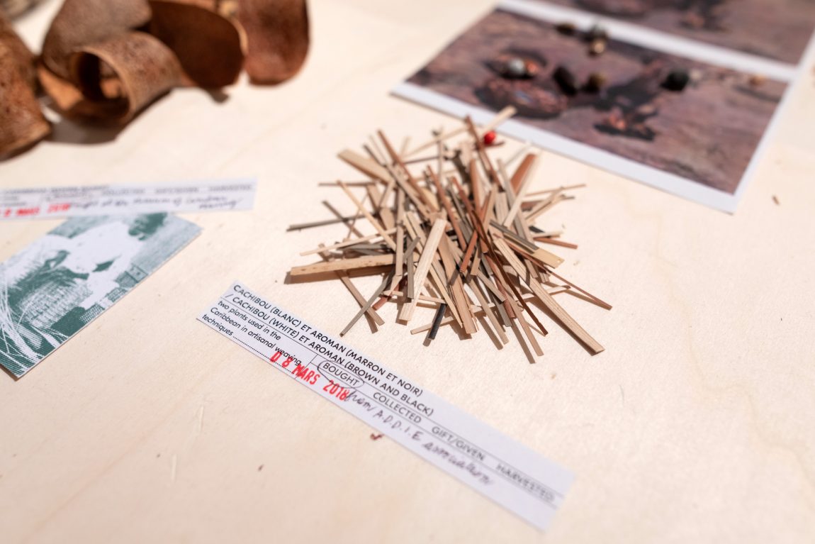 Since 2016, Florian Dach and Dimitri Zéphir form a duo, dach&zephir, in which they combine their respective approaches: speculative fiction, scenario driven (Dach) versus craft-based, relational and poetic (Zephir). Building on Dimitri’s thesis “Les mailles fertiles d’un créole”* (The fertile mesh of a Creole), they initiated the field research Creole Praise in 2017 in an effort to unveil and activate the mechanisms that have nourished and continue to nourish creolisation processes in the French Antilles. One of the interlocutors of the project Creole Praise, poet and writer Ernest Pépin, understands Creole culture as built “à partir de restes”, from leftovers.