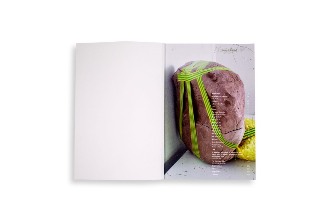 Though Fránková’s practice is mostly rooted in ceramic clay, she has maintained a fascination with basic forms, found shapes and the residual materials collected throughout the making process, often pausing to appreciate and reflect upon the beauty of primary procedures in working with the clay. These moments of pause and reflection play as significant a role in Fránková’s work as the formed artifacts themselves, and aid in thinking about the meaning of making new objects, whilst locating symbolism and metaphorically taking the formation process a step further. Using the central themes of Performance without a Spectator, Unfinishedness and The Art of Becoming as a basis, the texts and documentation presented in this monograph seek to unravel, interweave and connect the multifaceted layers of Nina Fránková’s practice.