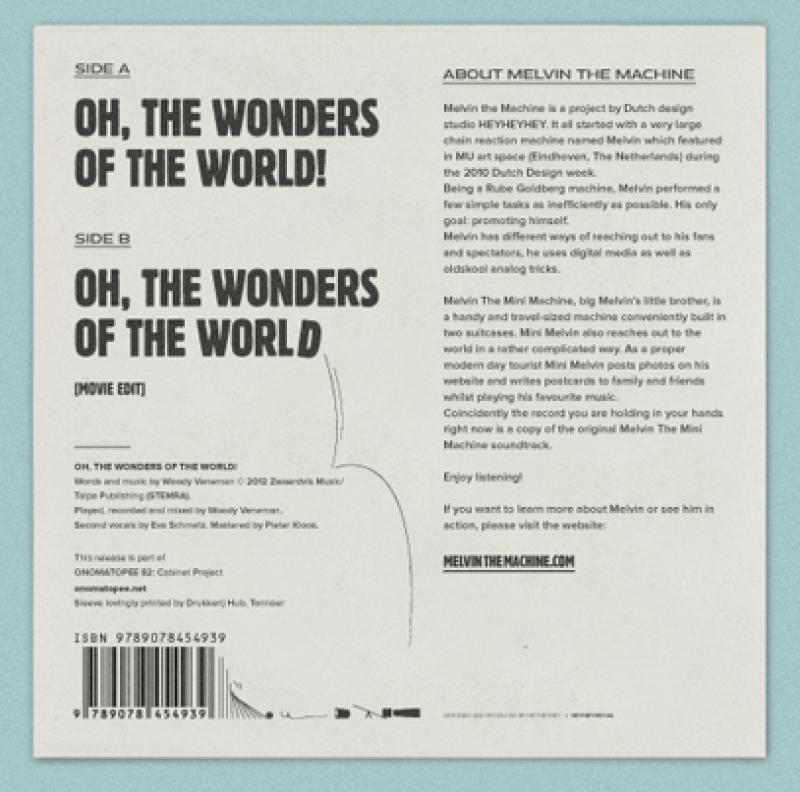 Early 2012, design studio HEYHEYHEY had some time to spare and they felt the need to challenge themselves once again, so they set out to build a new Melvin. This time around they could determine their own boundaries so they built a travel version that ‘sends’ its own postcards and interacts (in some way) with the people around it. Like a proper traveler, one could say.The first launch of the mini melvin took place in London 2012, in the framework of the Onomatopee groupshow Comfort Zone and Disillusion.