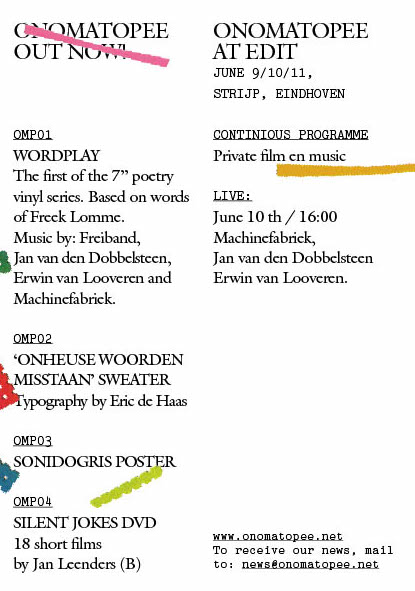 Onomatopee is subsidised by: Municipality of Eindhoven, Mondriaan Foundation, Fund BKVB, Office for Contemporary Art Norway and Pokon fund!