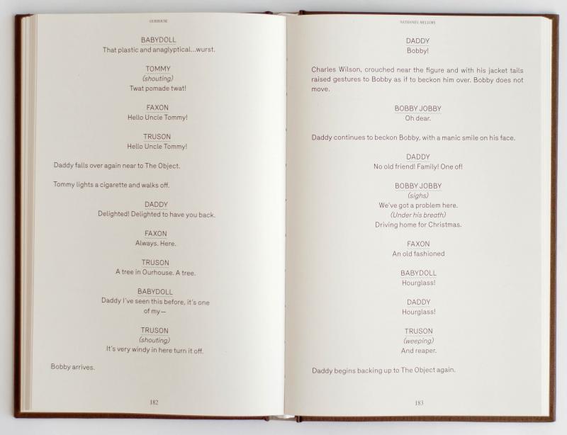 Book A/MEGACOLON/For and Against Language contains a selection of Mellors’ original scripts from 2006 onwards, that have since been turned into video and installation works - from the demise of an ageing Polish supercomputer in Brain One – Mózg Jeden (2006) to the language games and ideological clashes within the Maddox-Wilson family in Ourhouse (2010-).