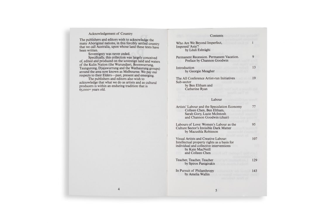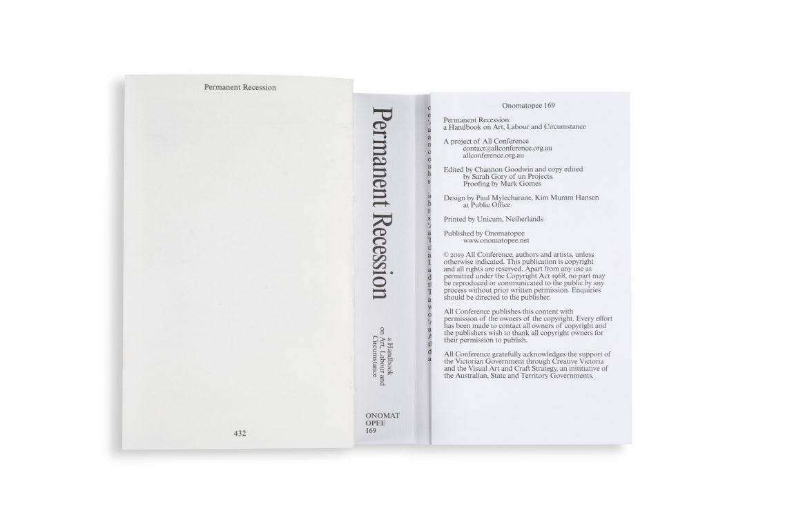 Permanent Recession: a Handbook on Art, Labour and Circumstance is an enquiry into the capitals and currencies of experimental, radical and artist-run initiatives in Australia.