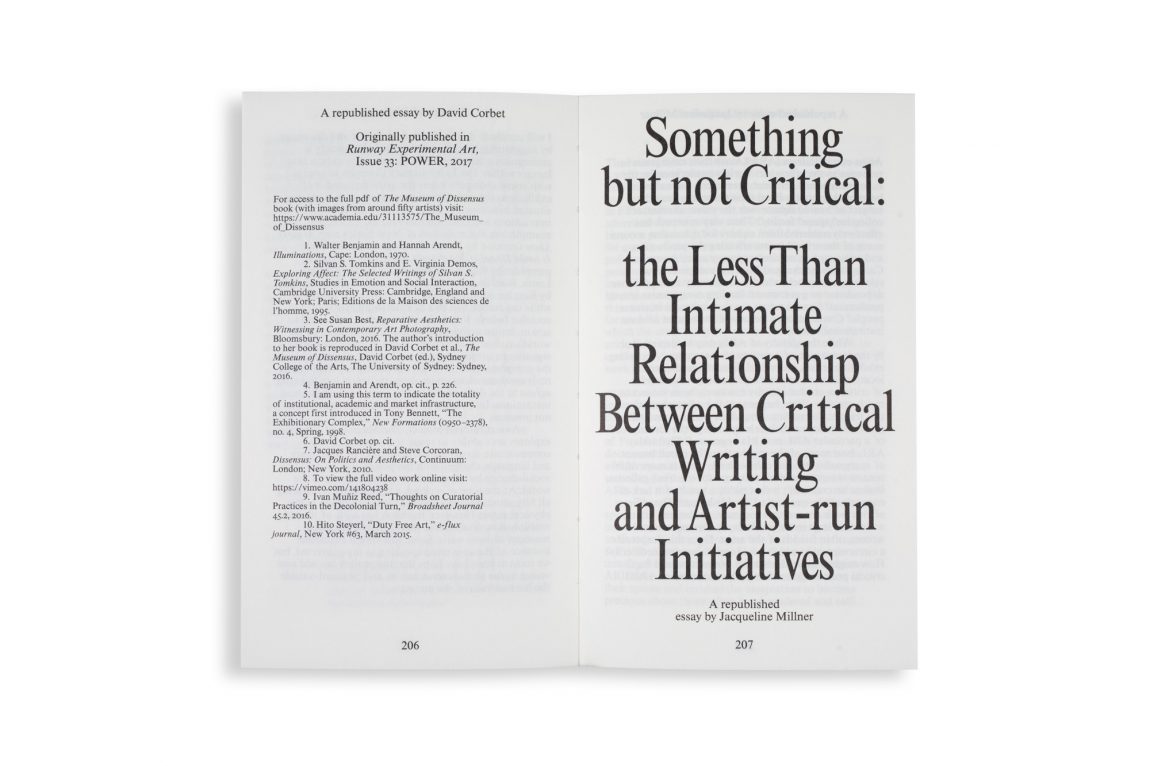 Excavating a shared history of independent practice stretching back to the 1980s, this publication situates new research within a rich continuum of debate about the Australian artmaking context.