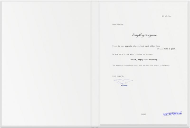 Lieven’s presentation at Extra City shows a snapshot of the second part of the research, Public Space. An important element in this research is the work l.e.t.t.e.r.s., consisting of 366 letters and drawings, one for each day of the year, by Lieven de Boeck that he addressed to himself. The letters are copies of found fragments of text and images. In de Boeck’s research they play a fundamental role because by telling a story from one person to another, they break through the private environment allowing for a public inner space between writer and reader to arise. Through the medium of the letter de Boeck plays with the borders of this created space. By transposing certain fragments into his own alphabet, the text turns into an image which can only be read by the artist. In so doing the public space is at once privatised and erased.