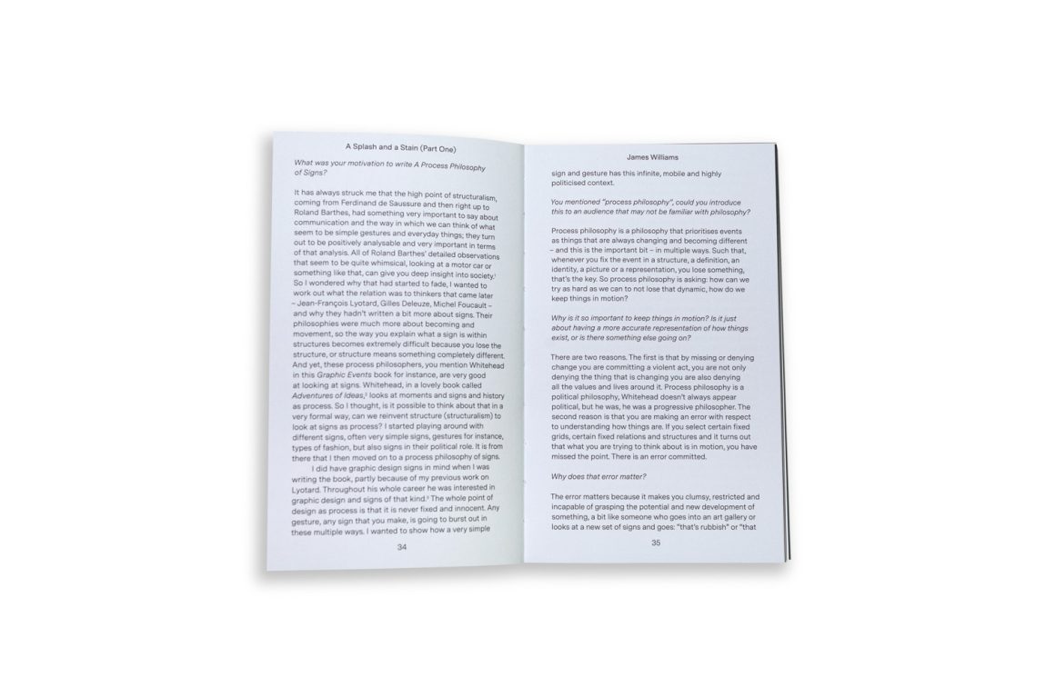 The lives of everyday graphics are never entirely graspable. James Dyer and Nick Deakin are inspired by the potential for experimenting with graphics in new ways and revaluing them. The authors of the book “Graphic Events: A Realist Account of Graphic Design,” curate a series of printings which take the audience on a journey into the life of graphics. The printings reveal new stories, that often stay unnoticed and extend beyond the traditional understanding of what graphic design is.