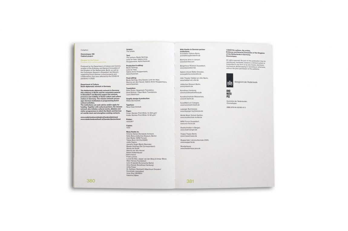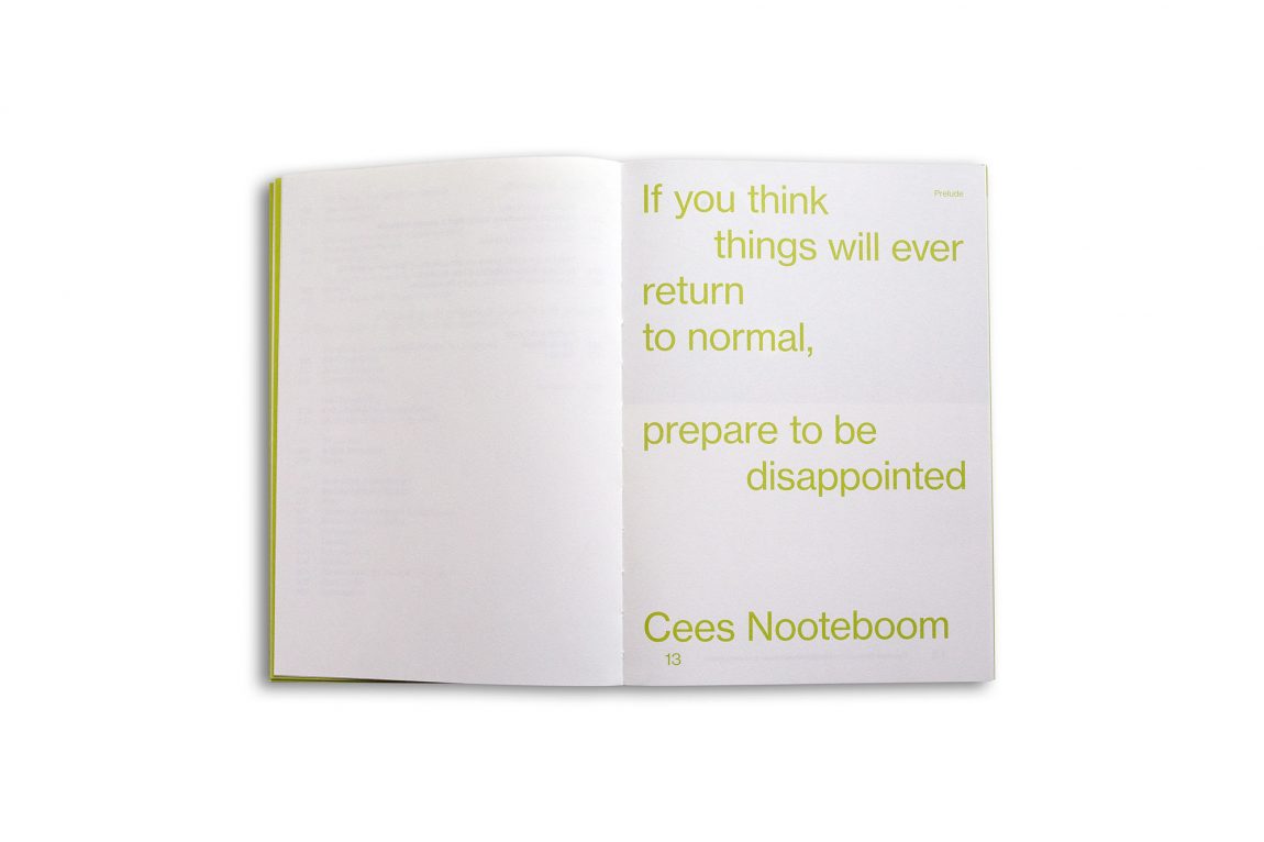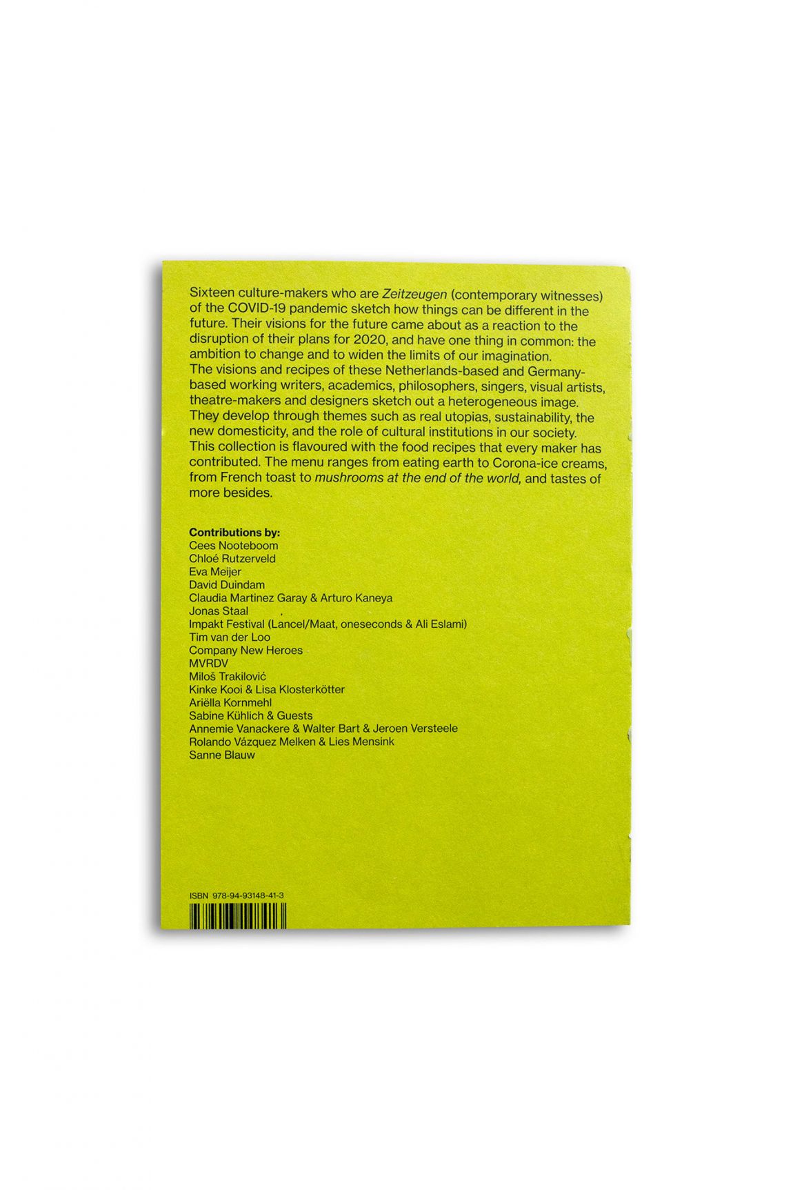 Sixteen culture makers who are Zeitzeugen (contemporary witnesses) of the COVID-19 pandemic sketch how things can be different in the future. Their visions for the future came about as a reaction to the disruption of their plans for 2020, and have one thing in common: the ambition to change and to widen the limits of our imagination.