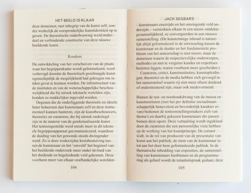 In this endeavour, Jack Segbars investigates the relationship between the work of art as exhibited visual image and the textual discourse that surrounds it, the role and function of the artist in relation to the curator, institute and art criticism that together form the discourse on art.