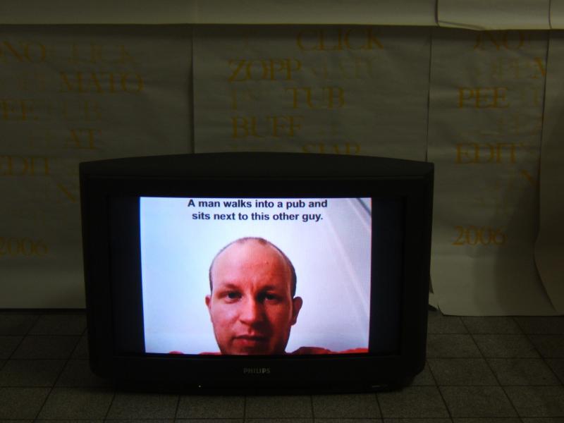 ‘Silent jokes’, The DVD, contains 18 short films of the Antwerp based artist Jan Leenders. In the films you see Jan telling a joke. The joke’s in English but the sound’s off. Luckily enough there are subtitles. That made this object so damn interesting to Onomatopee: the nice exchange of text, sound (actually non-sound) and visuals (one can almost hear Jan talk when looked at him on screen). Furthermore: the humour is nicely dry.
