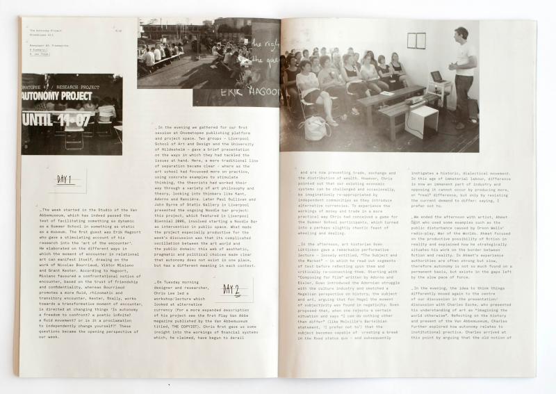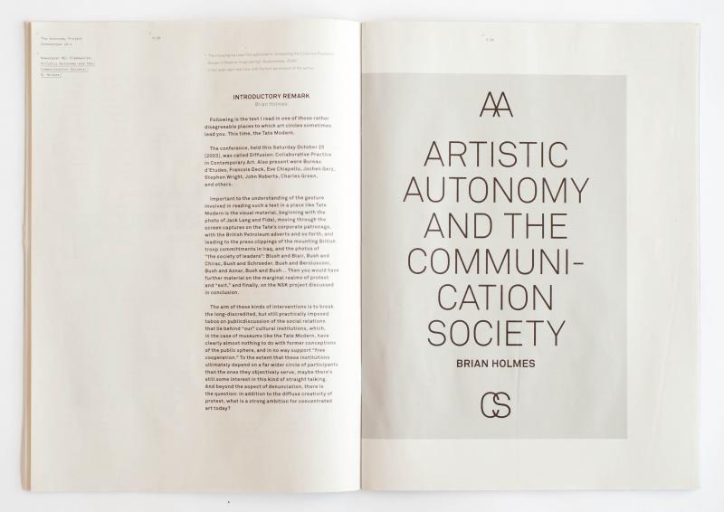 The current reformation of artistic practices as globalised and professionalised; and the ways in which these practices are implemented and permeated by the social, political and economic realm pose new questions and challenges to the entire field of artistic production, mediation and education. The Autonomy Project is an international collaboration between art spaces and research/education institutes that seeks to address these multi-faceted geographic and cultural cont exts, facilitating a number of events over the coming years in various locations, bringing the notion and practice of Autonomy back into debate.