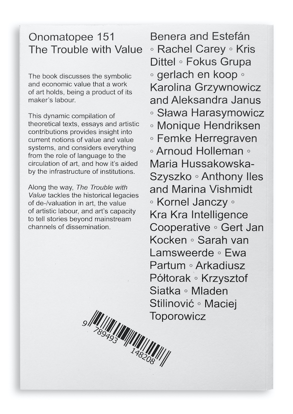 Following its first chapter at Bunkier Sztuki, Gallery of Contemporary Art, Krakow, Poland The Trouble with Value arrives with a second iteration to Onomatopee. Curated by Kris Dittel (Onomatopee) and Krzysztof Siatka (Bunkier Sztuki).