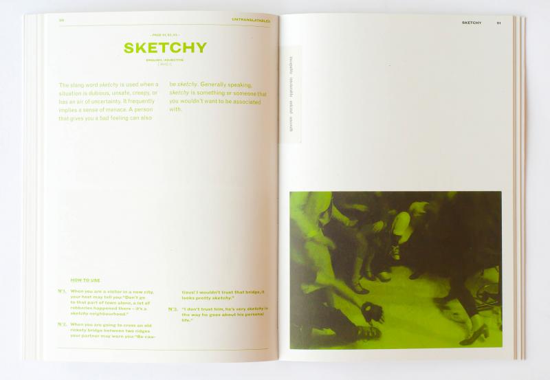 “Untranslatables”, a project by Yolanda de los Bueis, Christoph Schwarz, Elisa Marchesini and Sarah Vanhee is not a dictionary. It is not an encyclopaedia. It is not a language course, a grammar book or linguistic research: it is an imaginary word universe that shows gaps and (im)possibilities. It reflects the inability to name everything there is, and the indomitable human desire to do so. It is a colourful answer for the grey zone in our daily vocabularies.