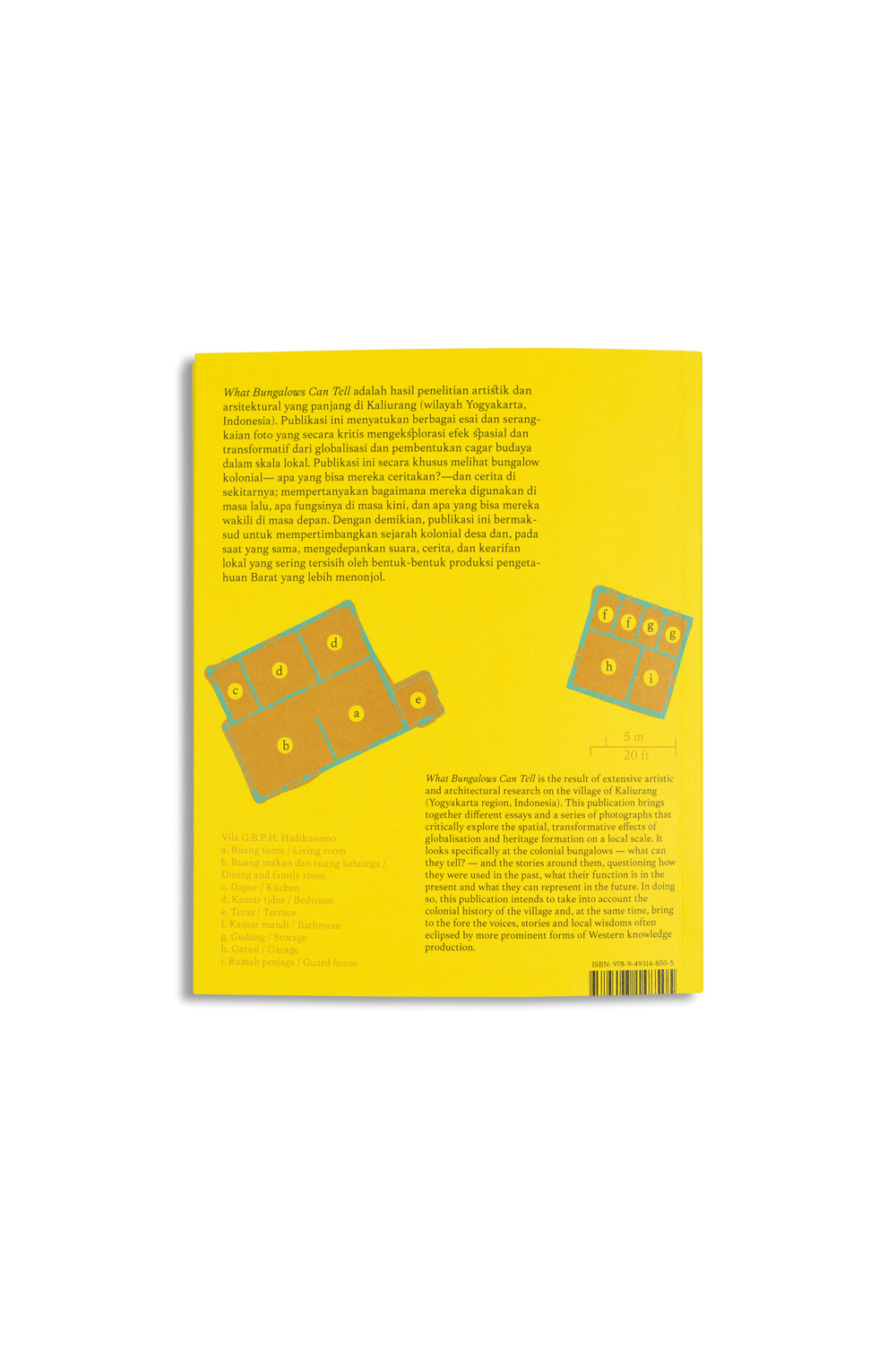 What Bungalows Can Tell is the result of extensive artistic and architectural research on the village of Kaliurang (Yogyakarta region, Indonesia). This publication brings together different essays and a series of photographs that critically explore the spatial, transformative effects of globalisation and heritage formation on a local scale. It looks specifically at the colonial bungalows —what can they tell?— and the stories around them, questioning how they were used in the past, what their function is in the present and what they can represent in the future. In doing so, this publication intends to take into account the colonial history of the village and, at the same time, bring to the fore the voices, stories and local wisdoms often eclipsed by more prominent forms of Western knowledge production.