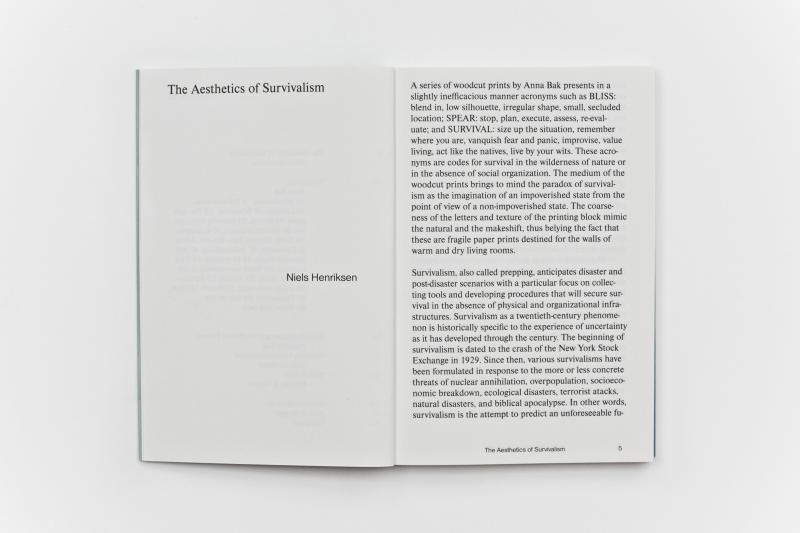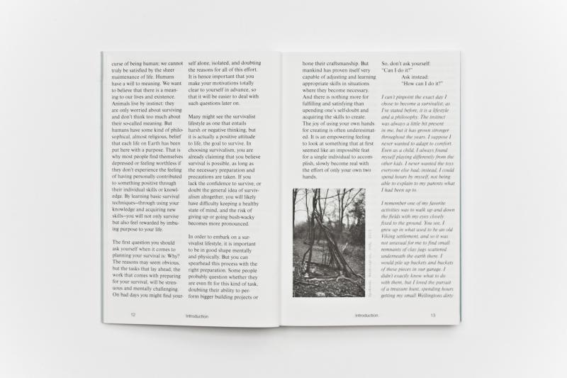 Anna Bak’s Wilderness Survival is a project about the survival of real or speculative dangers, which considers practical and philosophical understandings of the ‘survivalist’ lifestyle.