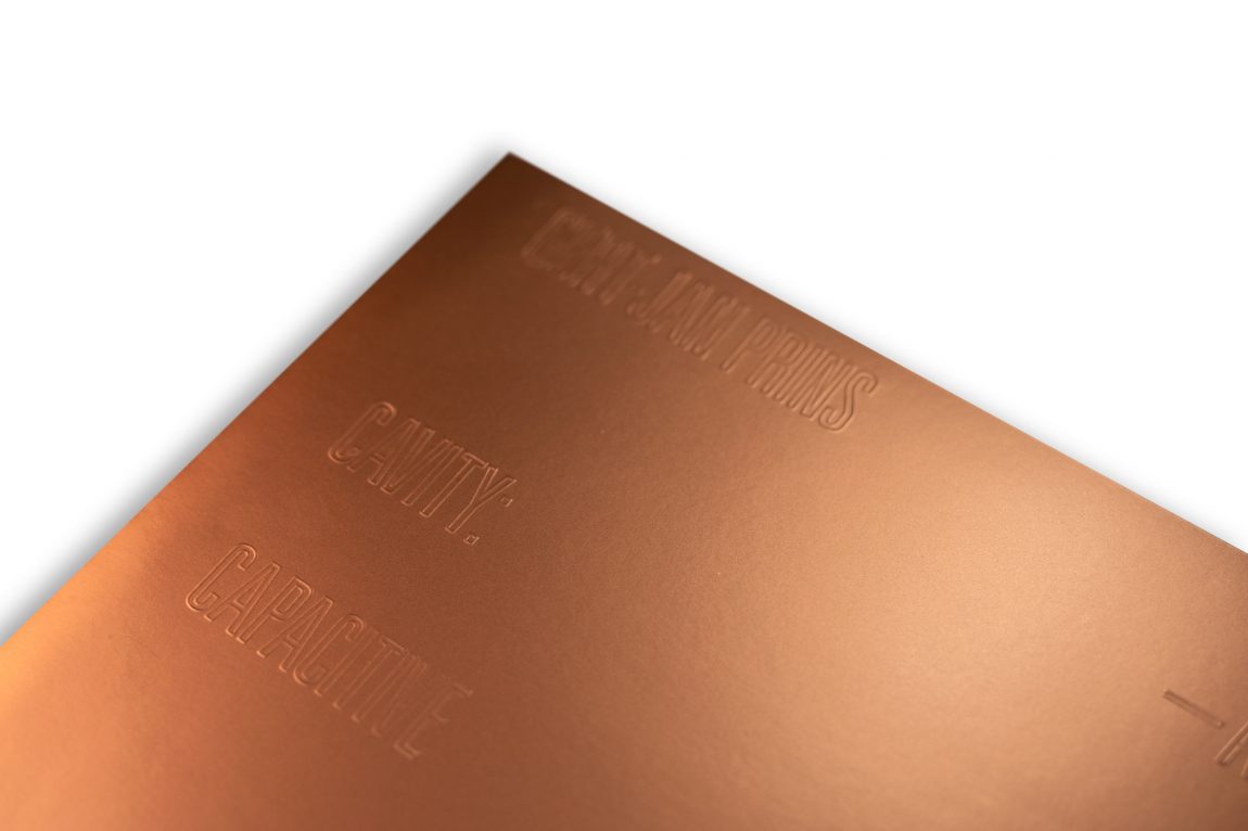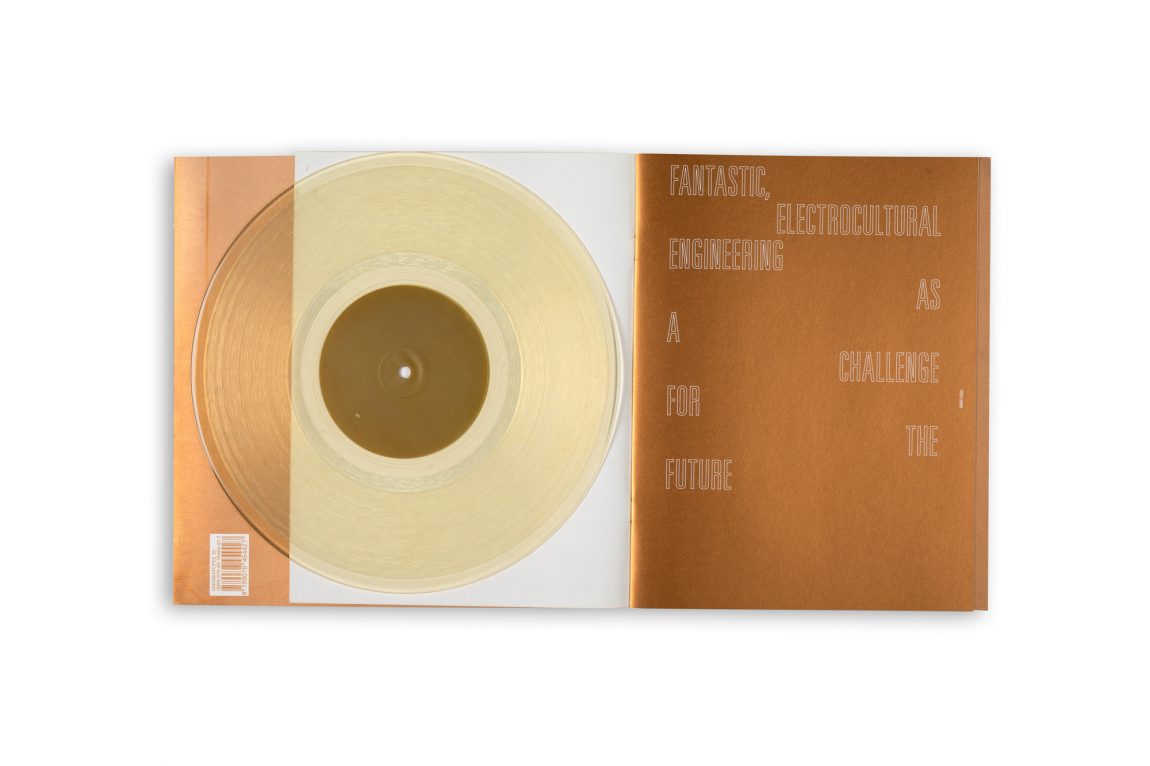 10 inch transparant vinyl in a booklet (30 pages or so)/cover/sculpture of seemingly pure bronze. The booklet’s (2) feature either photo’s of the work or texts concerning the work.