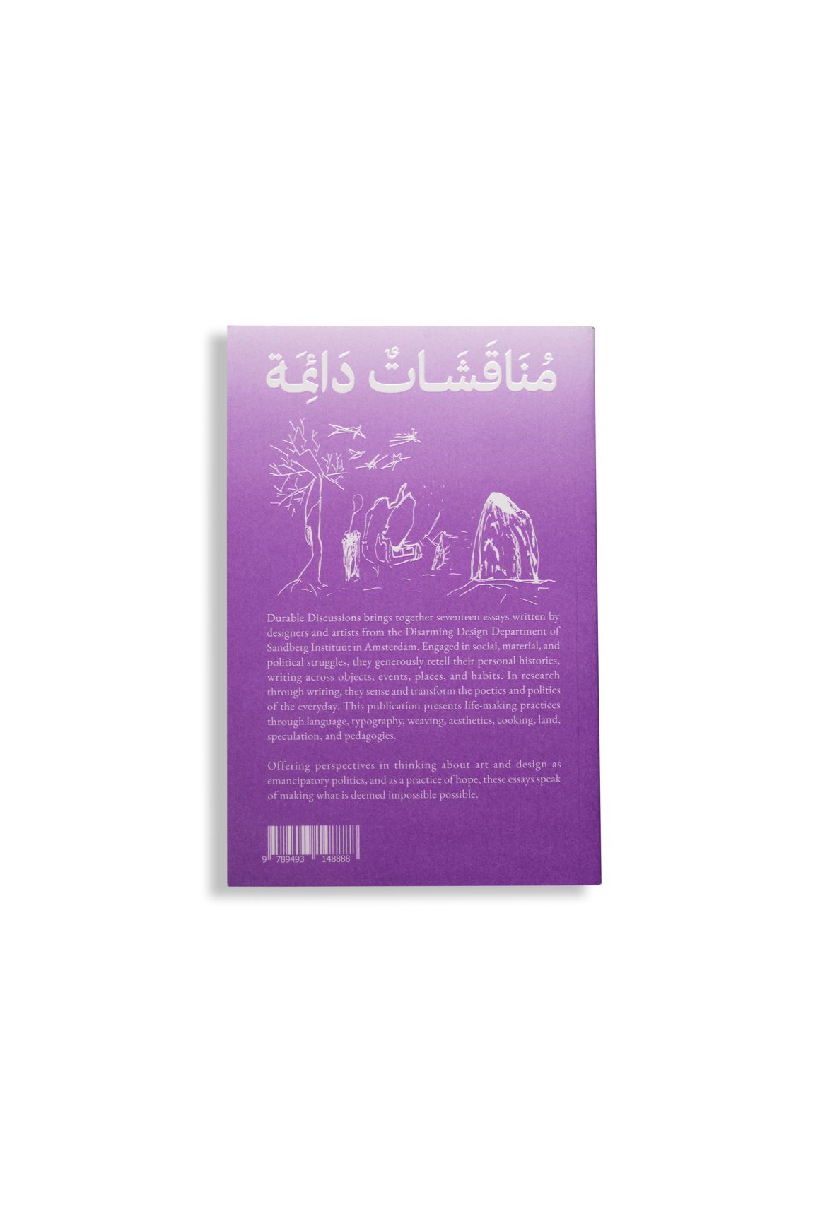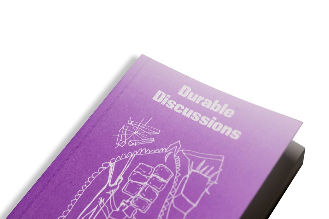 Durable Discussions brings together seventeen essays written by designers and artists from the Disarming Design Department of Sandberg Instituut in Amsterdam. Engaged in social, material, and political struggles, they generously retell their personal histories, writing across objects, events, places, and habits. In research through writing, they sense and transform the poetics and politics of the everyday. This publication presents life-making practices through language, typography, weaving, aesthetics, cooking, land, speculation, and pedagogies.