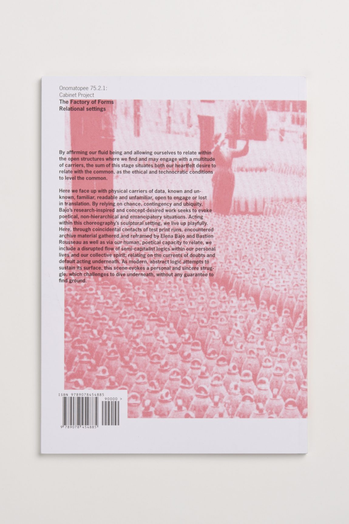 Here we face up with physical carriers of data, known and unknown, familiar, readable and unfamiliar, open to engage or lost in translation. By relying on chance, contingency and ubiquity, Bajo’s research-inspired and concept-desired work seeks to evoke poetical, non-hierarchical and emancipatory situations. Acting within this choreography’s sculptural setting, we live up playfully. Here, through coincidental contacts of test print runs, encountered archive material gathered and reframed by Elena Bajo and Bastien Rousseau as well as via our human, poetical capacity to relate, weinclude a disrupted fl ow of semi-capitalist logics within our personal lives and our collective spirit; relating on the currents of doubts and default acting underneath. As modern, abstract logic attempts to sustain its surface, this scene evokes a personal and sincere struggle, which challenges to dive underneath, without any guarantee to find ground.