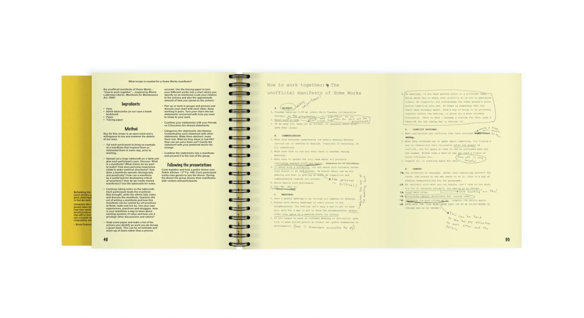 Home Works – A Cooking Book is a tool for everyone that wants to use art to challenge what work we value and how work is organised.