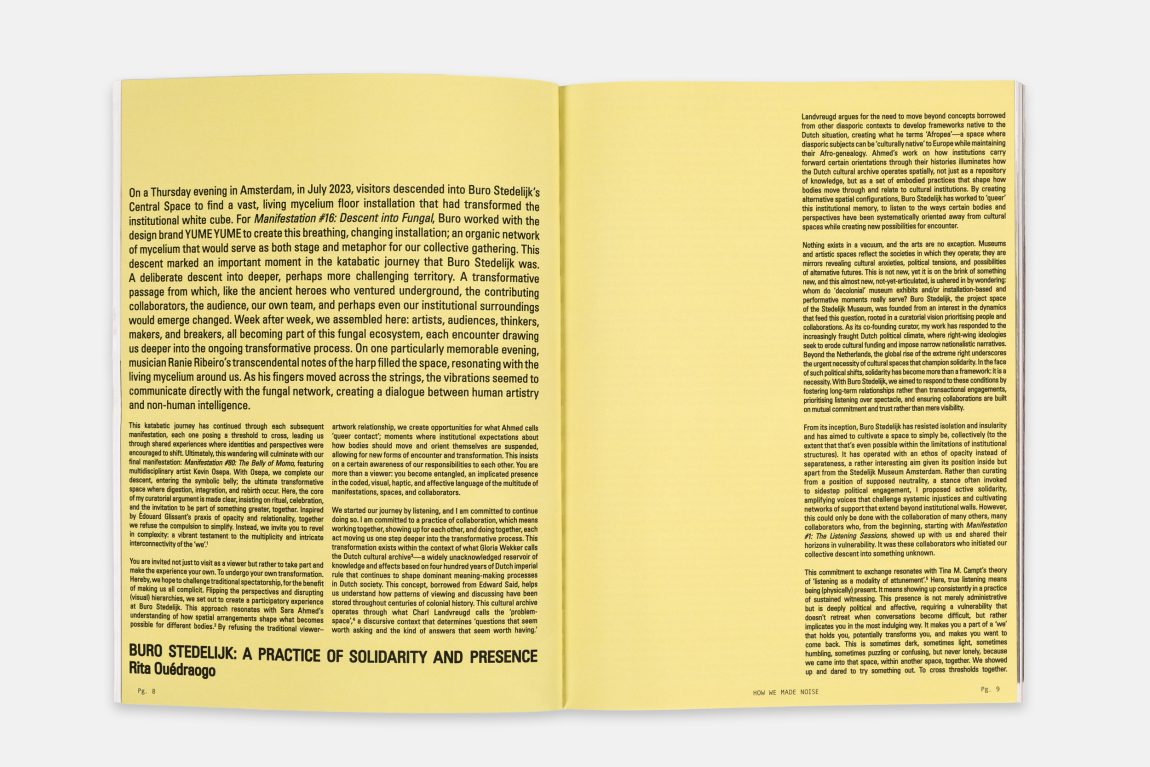 Between December 2022 and November 2025, Buro Stedelijk worked with over 200 collaborators to explore the possibilities and impossibilities of working within an established art museum while trying to do things ‘differently’. Can institutions be reimaged from within? By looking at how Buro Stedelijk developed an ambitious programme with an intention to do so with care, sensitivity, and criticality, while dealing with the legacy, exposure and power of its host, the book presents a compelling case study of research by doing. Looking at the importance of shedding a self-reflective light on our own implication and the detail of daily labour, this book investigates if working with and within institutions can offer us pockets of potential, albeit temporary, from where we can be the change we wish to see in the world.