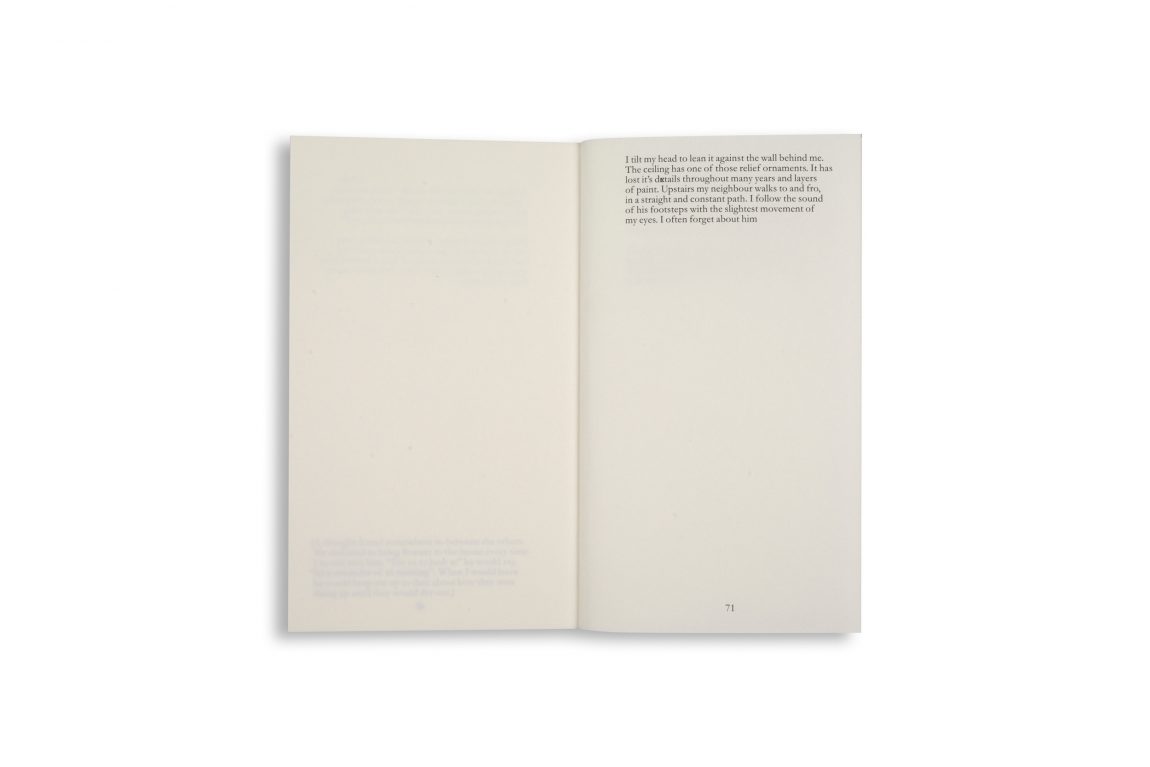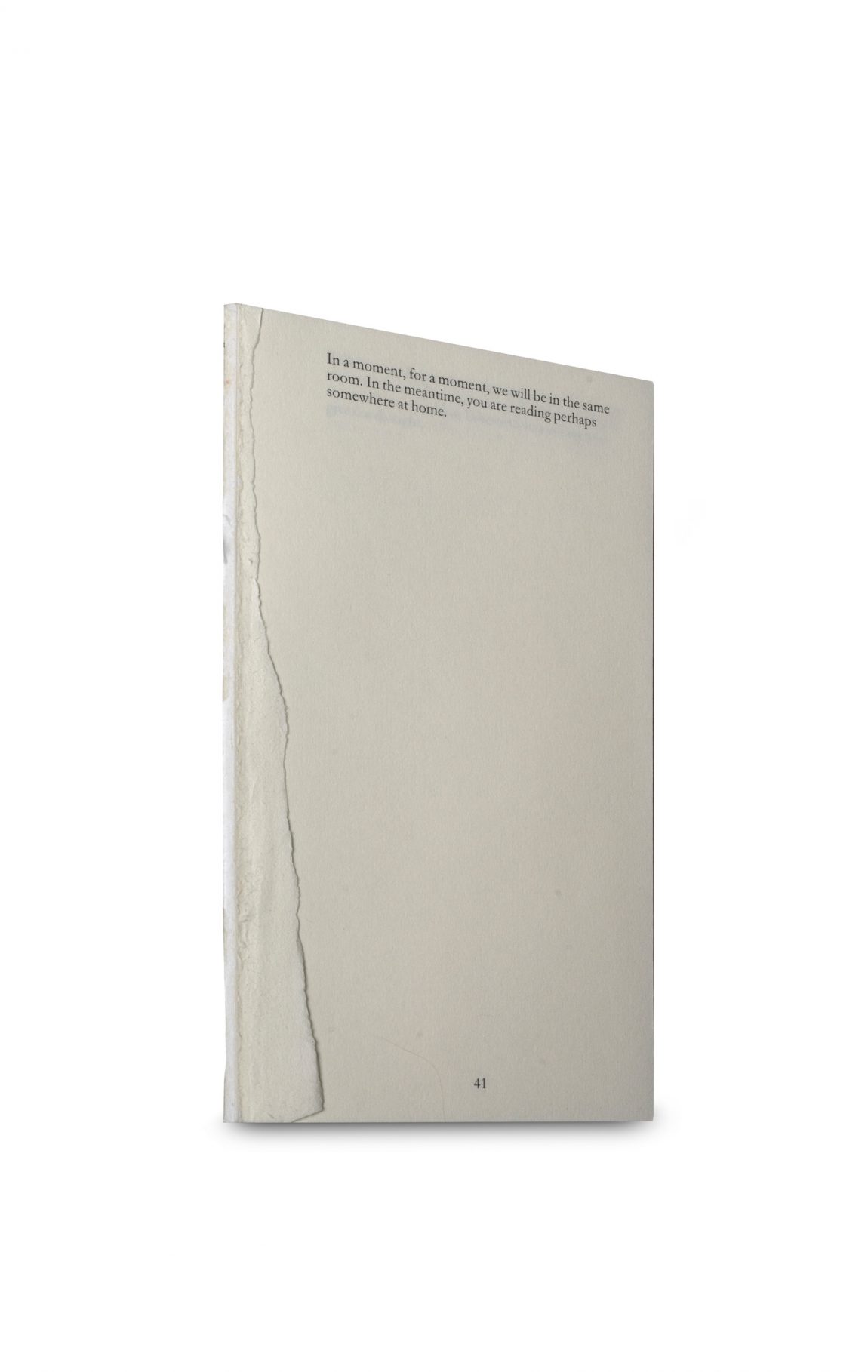 *A moment is clenched between pages. The immateriality of this moment becomes tangible through references of defined volumes in space. Here, reader and writer meet in a form of reciprocal space which is intersubjective to both and strongly built upon our senses.