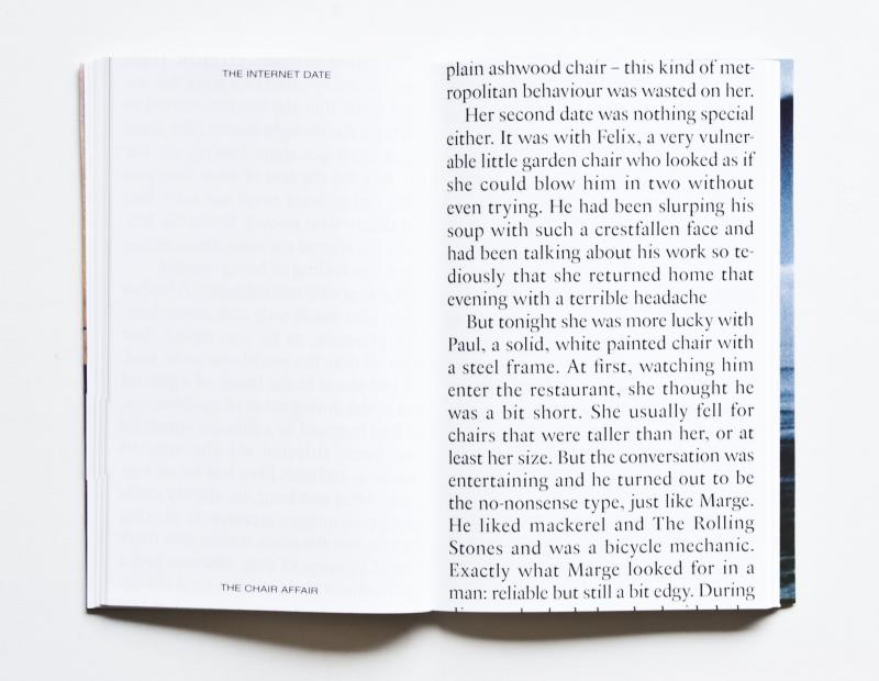 The sexual emancipation of chairs is promoted by a series of photo’s of chairs in Kamasutra positions and some short erotic fiction.
