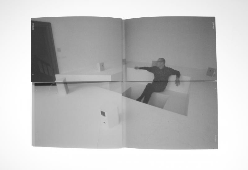 The book is truly unique. First of all for the color tones are solely made up by silver and black, capturing the poetic, techy vibrancy of the work. Second and most prominent is the integration of two separately, horizontally placed booklets within the binding cover. The above booklet captures the works while the one below the theory. This allows for flanked reading and browsing through space and tonality.