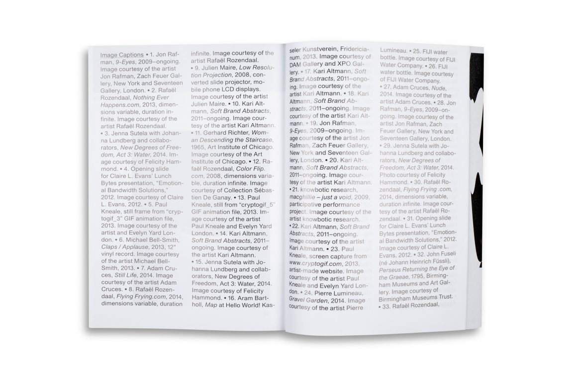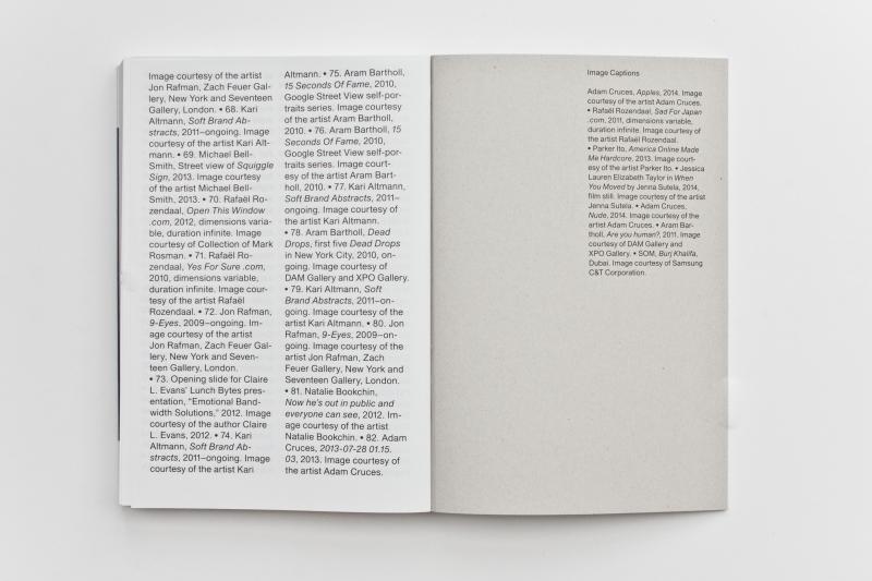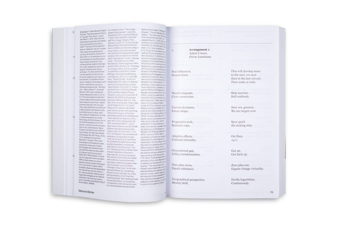 By opening up the often narrowly-defined discursive field of “post-internet,” artistic practices are examined thematically within the larger context of digital culture. As such, this anthology offers valuable new contributions to the fields of art history, media studies, philosophy, curatorial studies, and design.